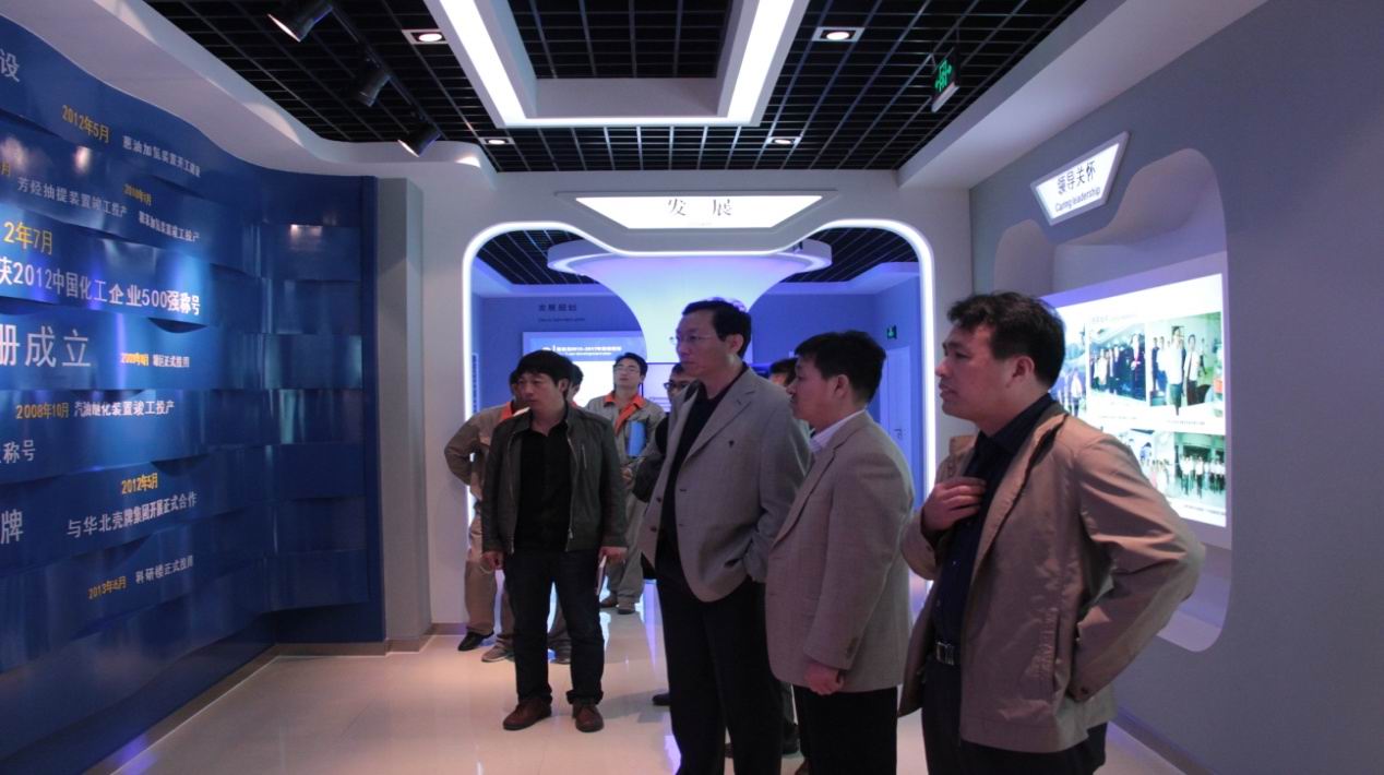 會議前,雙方一同來到新啟元展廳,就公司基本情況、現(xiàn)有裝置、人文等方面進行介紹,期間,雙方領(lǐng)導還就公司裝置工藝循環(huán)流程展開討論。