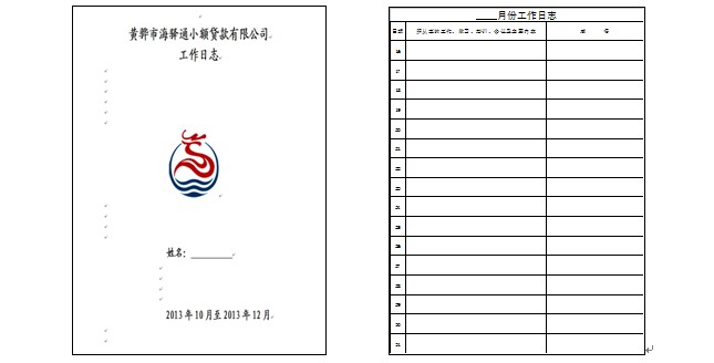 為了更好地推動工作,提高工作效率和員工的責任感,貸款公司開展了員工工作日志制度。使每位員工都能清楚自己今天做了哪些工作,哪些工作還沒有做,自己心里有一個工作算盤,如何合理安排時間,去有效落實工作,把工作干得更好,更出色。公司還規定每半月亮工作日志、談感悟。同時通過工作日志,也能具體掌握全體員工的工作概況,對工作中的得與失,起到很好的檢驗和總結作用。
