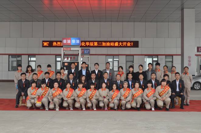 開業(yè)儀式結(jié)束后,出席儀式的各位領(lǐng)導(dǎo),以及華辰石油加油站的員工進行合影留念。