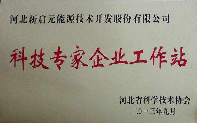 2013年4月,新啟元公司技術工程部根據河北省科學技術協會印發的《關于2013年度院士專家服務中心、科技專家企業工作站申報工作的通知》組織材料申報科技專家企業工作站,于7月上報到滄州市科協學會部,初審通過后,獲得科技專家企業工作站的榮譽稱號。