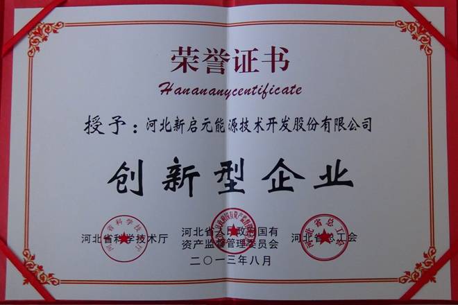 2013年5月公司收到河北省科技廳印發的《關于開展河北省創新型企業評審工作的通知》,技術工程部根據通知要求組織相關材料申報創新型企業,于6月上報到滄州市科技局,初審通過后,7月公司副總經理劉海軍、技術工程部經理王政、科員王亞君在石家莊參加答辯,并順利通過獲得河北省創新型企業榮譽稱號。