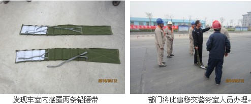 本次突查主要針對外來車輛進廠安全因素及車輛是否攜帶違禁品作為重點檢查項,每一位管理者都親自上車對駕駛室內部進行檢查。經過1個小時的檢查,查處進廠過磅前車輛司機手機未處于關機狀態1例、攜帶違禁品鉛腰帶1例。針對有違規行為的司機或單位,運行三部將按照車輛進廠管理規定給予相應處罰,情節嚴重的已移交健康安全環保部處理。