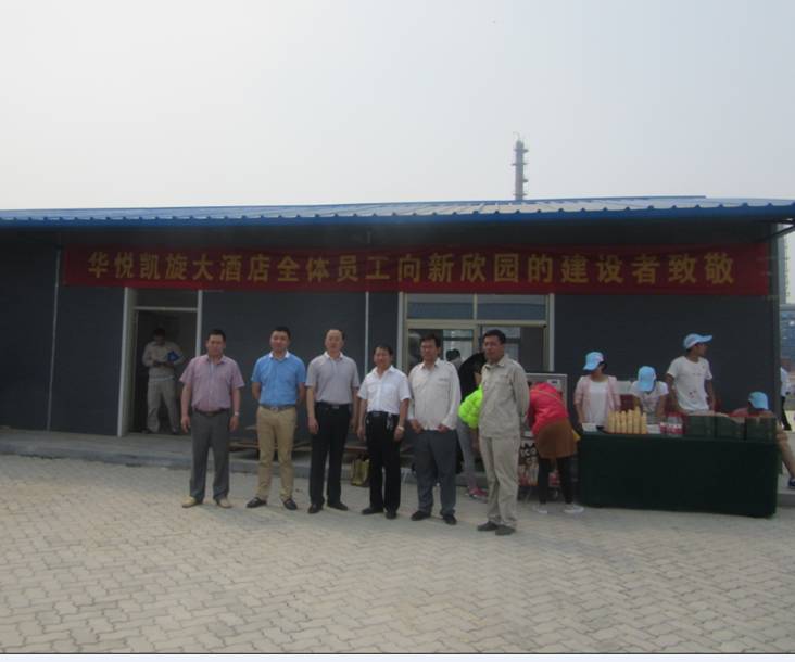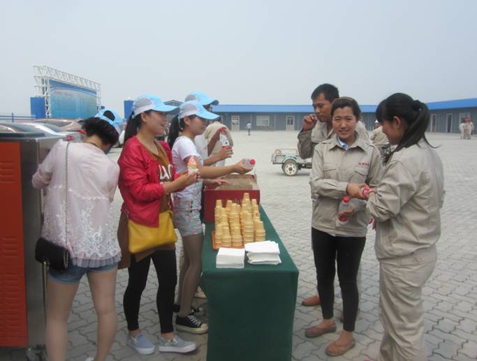 根據(jù)董事長提出的“集聚激情、 亮出真情、 體現(xiàn)親情”的口號, 6月17日一早,華悅凱旋大酒店經(jīng)過細(xì)致安排,選派精干員工,在酒店副總經(jīng)理孫軍和施艷帶領(lǐng)下,到新欣園施工現(xiàn)場進(jìn)行慰問,將一瓶瓶滿懷敬意的礦泉水送到建設(shè)者們的手中,并現(xiàn)場制作冰激凌,給建設(shè)者帶去一絲絲“溫暖 ”的涼意,全體員工共祝新欣園生日快樂。