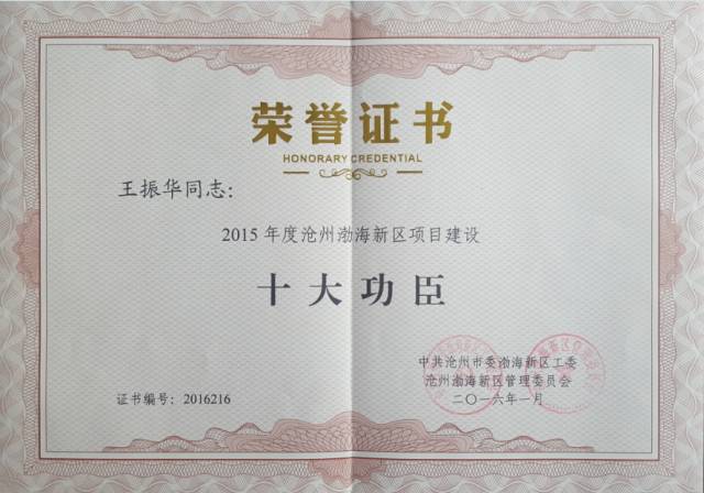 集團董事長王振華同志獲得“2015年度滄州渤海新區項目建設十大功臣”榮譽稱號,榮譽的獲得,是河北中捷石化集團引領新區經濟發展,助跑園區經濟增長,促進園區經濟穩定的又一見證,榮譽的背后,也是新區政府對集團經濟發展、項目建設的高度肯定,為集團在以后的發展道路上獲得政策支持提供了有力保障。河北中捷石化集團的發展道路將愈發寬廣,繼續為地方經濟的騰飛保駕護航!