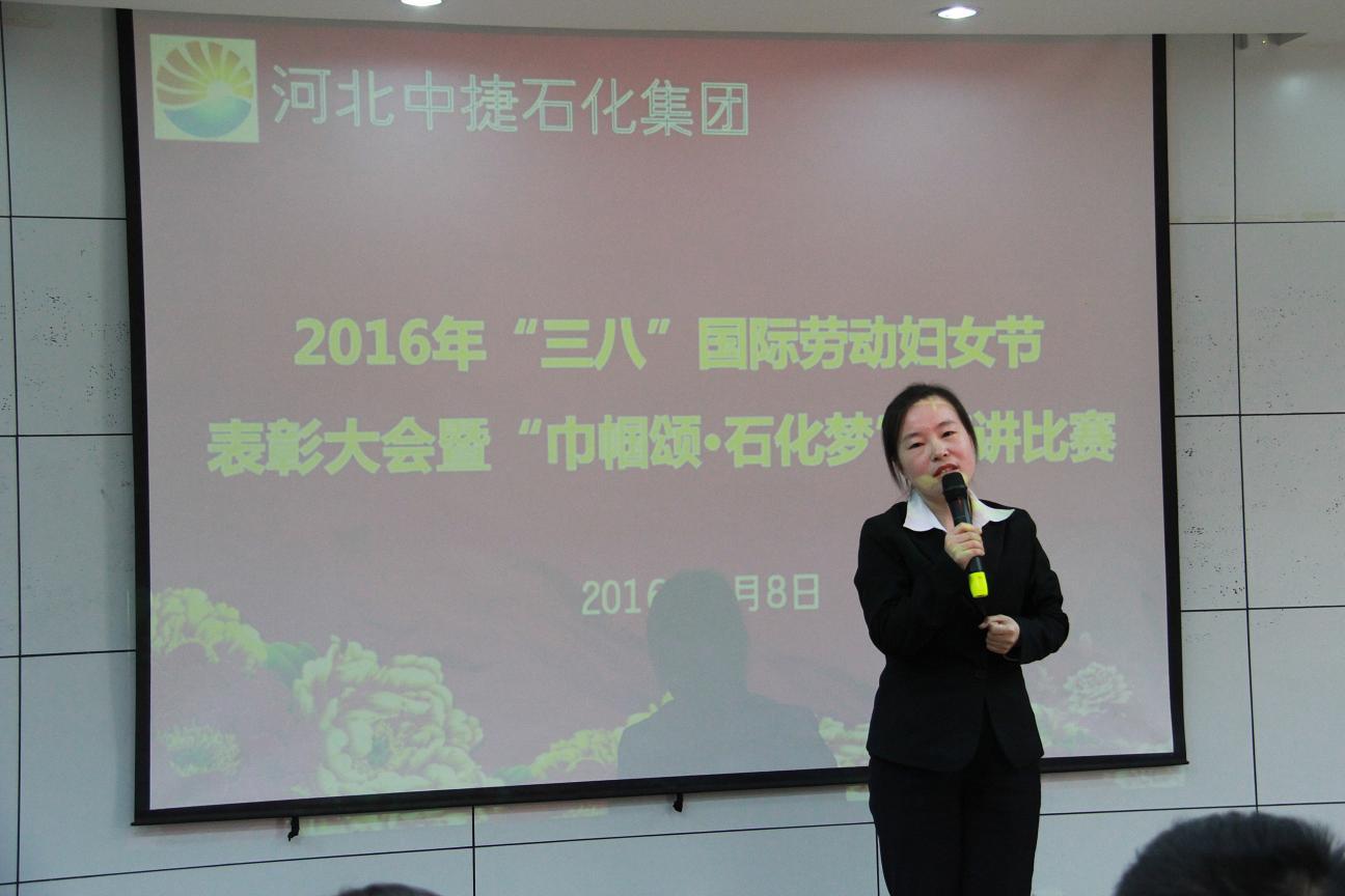 3月8日,是國際勞動婦女節,為了讓公司的女工度過一個輕松快樂的“三?八”婦女節,同時表彰先進女工,河北中捷石化集團2016年“三八”婦女節表彰大會暨“巾幗頌?石化夢”演講比賽于3月8日下午隆重舉行,集團公司及各所屬單位領導、嘉賓評委、員工代表共計70余人參加了此次會議。