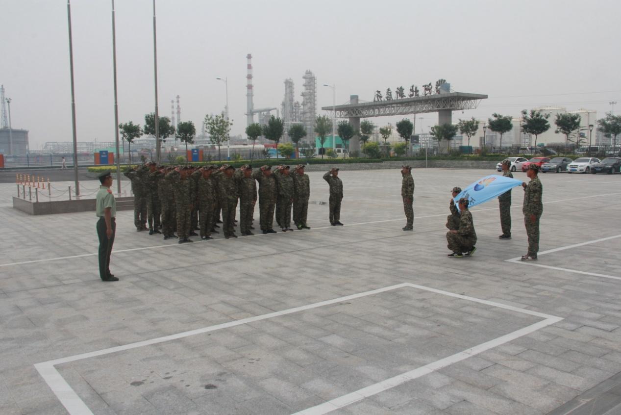 隨后,公司副總經理劉立新宣布新員工軍訓匯報開始,37名新員工對著中捷石化集團的旗幟鄭重宣誓。鏗鏘有力的聲音,矯健有序的步伐,整齊劃一的隊列,充分展現了新員工的精神風貌。