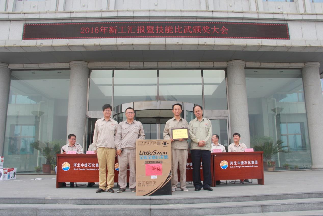 匯報結束后,公司領導為技能比武獲獎團隊頒獎,并提出了新的要求。綜合管理部經理李樹祥代表技能竟比組委會向大會作小結匯報。技能比武活動共分四項綜合比賽,參加人員涵蓋運行部門全體管理人員、優秀班長及操作工共計150余人。活動以安全生產實操為綱命題,通過竟比考核顯現了日常管理及技術掌握的不足,也彰顯了增加的創新性視頻培訓所帶來的實用高效性,為今后提高技能培訓開創了新方法。