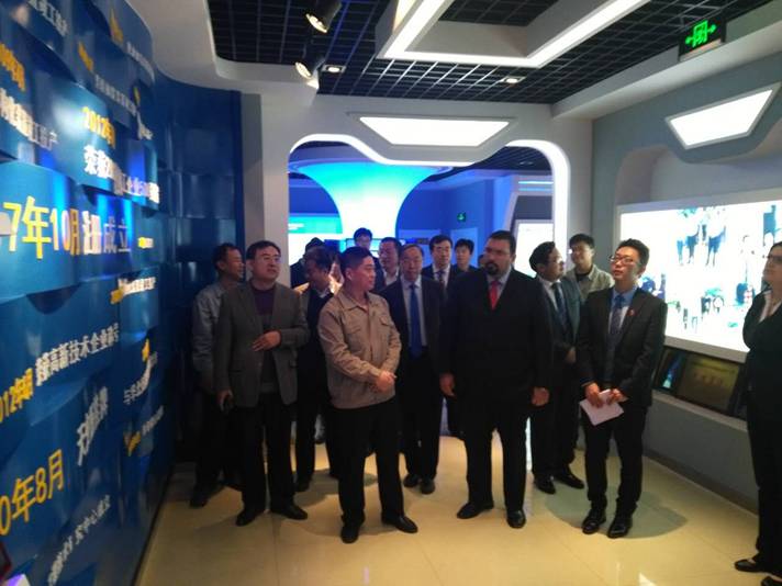 11月14日下午,委內瑞拉蘇克萊州庫馬納市市長大衛?貝拉科斯一行在園區領導呂振華、孟輝的陪同下,來到新啟元公司進行參觀考察,集團公司總經理于國臣、新啟元公司董事長李志剛、總經理喬樹華等公司領導進行熱情接待。