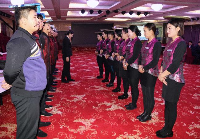 餐飲服務(wù)業(yè)是社會(huì)文明的窗口,餐飲業(yè)的服務(wù)質(zhì)量是酒店日常管理的中心工作。全體員工都要有質(zhì)量意識(shí),管理人員更要樹(shù)立服務(wù)質(zhì)量觀念。黃驊華悅凱旋大酒店為了提檔升級(jí),打造精品,以提升服務(wù)質(zhì)量為著點(diǎn),將酒店培訓(xùn)工作做扎實(shí)、做到實(shí)處,近日組織開(kāi)展了一系列培訓(xùn)工作: