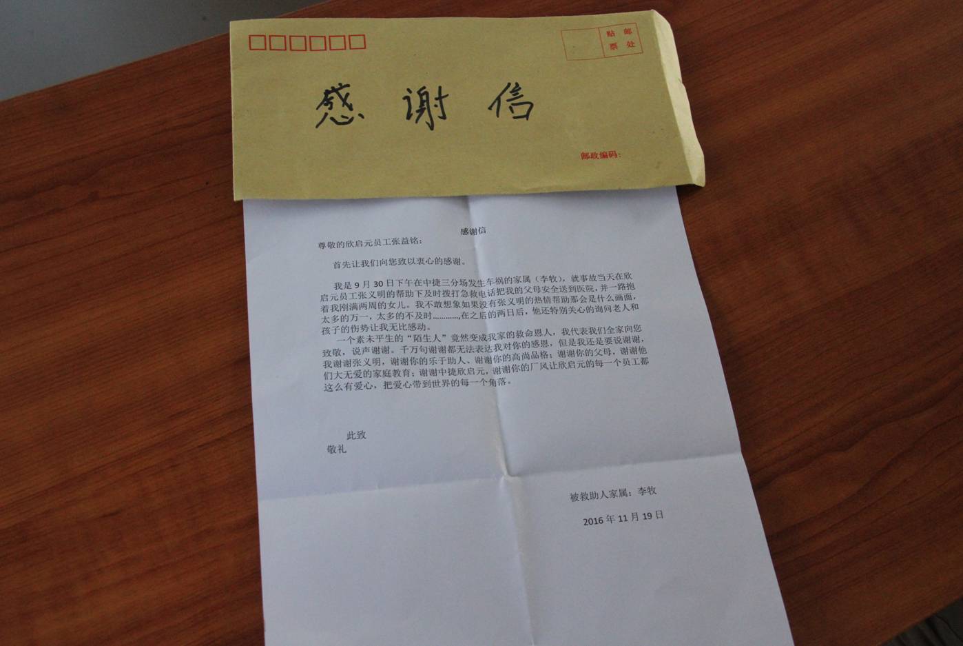 救護車到來后,張益銘與醫護人員將兩位老人和孩子抬上車趕往醫院。到醫院后,他推著兩位老人做各項檢查,并墊付醫藥費,一直等到家屬的到來。由于下午還需要上班,和交警、家屬介紹完事故過程及大概受傷情況后他離開了醫院,事后沒和任何人提起,直到被救人員家屬送來錦旗和感謝信的那一刻。張益銘說:“在救人過程中沒耽誤時間是我最欣慰的”。