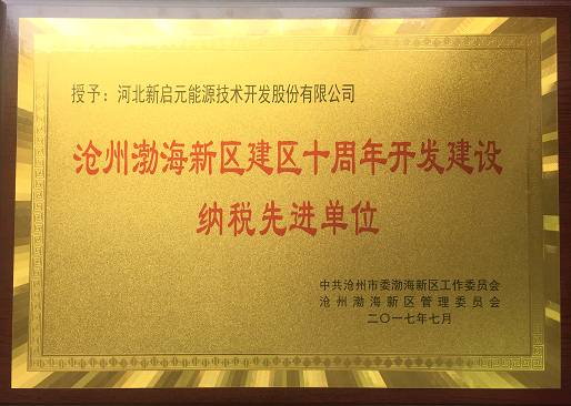 河北中捷石化集團有限公司在此次表彰大會上連中三元,載譽而歸。集團董事長王振華榮獲“渤海新區項目建設十大功臣”;集團總經理于國臣榮獲“渤海新區創新創業十大功臣”;下屬單位河北新啟元能源技術開發股份有限公司榮獲“渤海新區納稅十大先進單位” 。