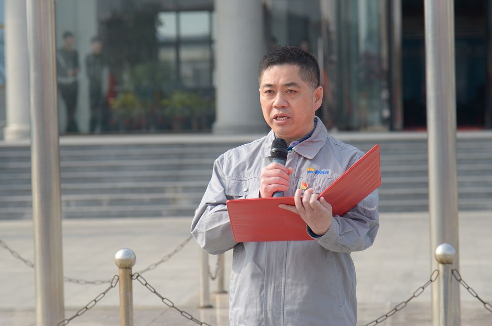 升旗儀式結束后,新啟元公司總經理喬樹華受集團委托在國旗下講話,他指出:中捷石化集團全體伙伴要高舉習近平新時代中國特色社會主義思想偉大旗幟,緊抓機遇,改革創新,以赤誠之心,為實現兩個一百年偉大目標而砥礪奮進。同時,五星紅旗在天安門國旗班前輩的指引下,高高飄揚在祖國懷抱里的中捷石化土地上,我們千余名伙伴要時刻銘記集團董事長的教導,堅定信仰,傳承石化精神,以實現中捷石化夢為己任,勇往直前,譜寫中捷石化新時代新篇章,為實現偉大中國夢而努力奮斗!