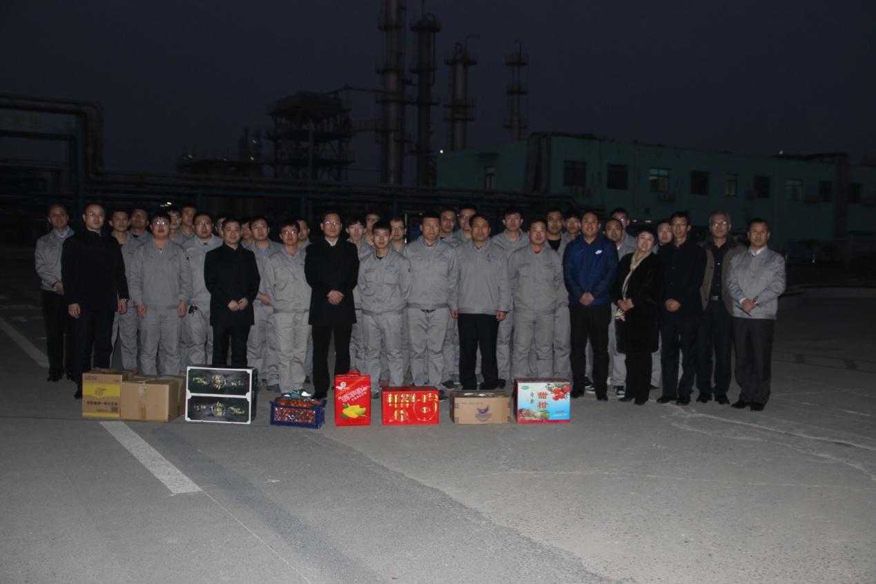 2019年2月4日,正值農歷臘月三十,河北中捷石化集團有限公司領導班子在集團黨委書記于國臣、總經理喬樹華的帶領下,先后赴黃驊華悅凱旋大酒店、滄州臨港華辰石油產品有限公司第三加油加氣站、河北捷馨建材責任有限公司地熱站、河北華鑫洺源石油儲運有限公司、河北華騰化工設備安裝工程有限公司、河北新欣園能源股份有限公司及河北新啟元能源技術開發股份有限公司,走訪慰問了除夕夜仍堅守在工作崗位無私奉獻的石化伙伴們,為大家送去慰問品,并致以誠摯的問候和美好的祝福,感謝他們在新春佳節的付出和努力,同時祝愿全體員工及其家人身體健康,萬事如意,春節快樂,闔家幸福。