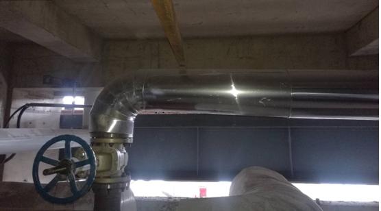 新欣園150噸鍋爐裝置設有一臺低壓除氧器,目的是通過低壓蒸汽加熱鍋爐給水,在一定壓力下達到水的飽和溫度點,析出水中的溶解氧,從而避免鍋爐承壓部件避免氧腐蝕。低壓除氧器原加熱蒸汽是通過工業(yè)汽輪機背壓后,產生0.1MPa的蒸汽作為熱源,工業(yè)汽輪機設計是汽輪機、電動機、給水泵的三機組,通過工業(yè)汽輪機做功,減少電動機的功率,拖動高壓給水泵,節(jié)約部分電耗。鍋爐的燃氣改造,蒸汽成本直線上升,三機組的運行已經不能起到節(jié)能的作用。