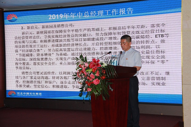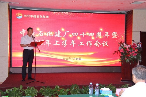 7月16日上午9:30,河北中捷石化集團在華悅凱旋大酒店4樓宴廳隆重召開建廠44周年暨2019年上半年工作會議,集團公司董事長王振華、總經(jīng)理喬樹華等集團領(lǐng)導(dǎo)及各級管理人員共計74人參加會議,整個大廳座無虛席。大會由集團公司黨委書記于國臣同志主持。