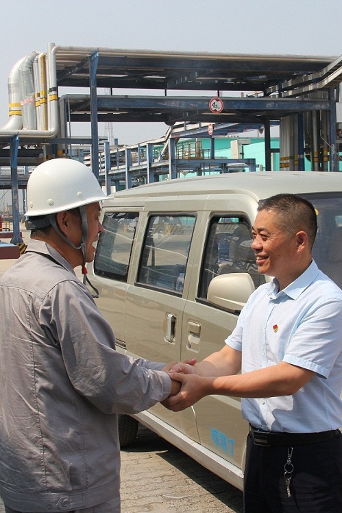 7月下旬,新啟元公司系統大檢修“攻堅戰”正式吹響了號角,拉開了帷幕。為鼓舞檢修一線干部職工士氣,7月26日上午,集團黨支部書記、總經理喬樹華,工會主席趙愛華、總工程師李金馬在新啟元公司總經理崔志河,工會主席劉立新、華騰安裝公司總經理劉世舉的陪同下深入新啟元公司檢修現場,看望慰問奮戰在酷暑中的干部職工,為他們送去綠茶、礦泉水、水果等慰問品,把集團黨政領導班子的無限關懷和真切關愛送到干部職工手中,向他們表達了敬意,表示了感謝。