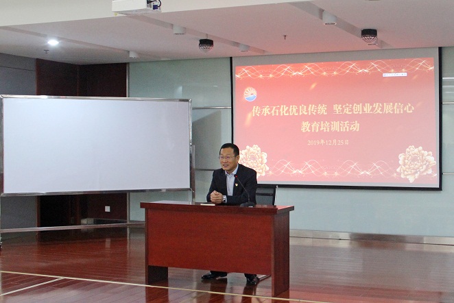 12月25日上午,新欣園公司“傳承石化優(yōu)良傳統(tǒng)堅定創(chuàng)業(yè)發(fā)展信心”教育培訓(xùn)活動在中控室二樓大會議室隆重召開,活動邀請集團黨委書記于國臣同志,集團黨委副書記、紀(jì)委書記朱振江同志講授中捷石化發(fā)展歷程中的經(jīng)典故事及傳統(tǒng)國學(xué)文化知識,公司領(lǐng)導(dǎo)、各部門經(jīng)理及員工代表共96人參加此次活動。