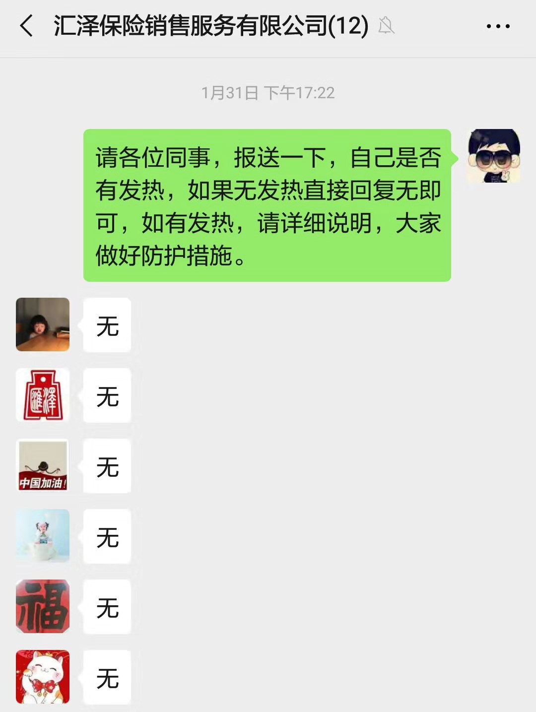 匯澤保險黨支部有黨員五名,黨支部書記牛旭宗組織全體黨員參與到防控工作中,要求全員做到不外出、不聚集、不到公共場所,根據自身情況做好疫情防控工作;當好宣傳員、信息員、戰斗員,建立黨員防疫群,定期發布防疫小知識,通過宣傳讓同事們認識到防疫的重要性和緊迫性。
