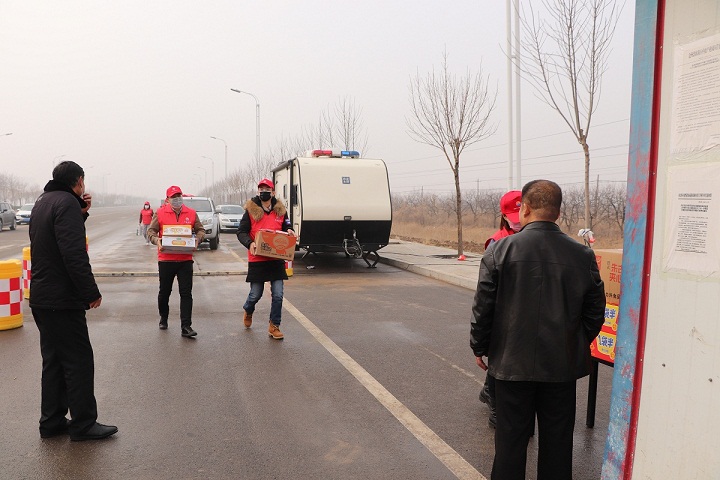 2月21日,河北中捷石化集團志愿服務隊為園區五個一線疫情防控站點捐贈方便面、純牛奶、火腿腸、面包、暖身寶、84消毒水等物資共計4000余元,用行動助力了一線疫情防控。這一箱箱物品彰顯著石化人的愛心,肩負著石化人的囑托,為一線疫情防控人員帶來了極大鼓舞。