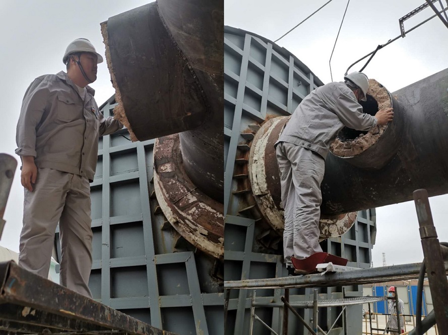此次檢修工期短,任務重。裂解爐的溫度降溫速度較慢,爐外是35度的高溫,爐內是50多度的高溫,作業現場粉塵較重,作業現場空間狹小等都給檢修工作帶來了一定的困難,但是現場的員工和領導爭先恐后進入現場進行檢修。作業環境是惡劣的,作業內容是辛苦的,但是我們的伙伴們行動是勇猛的,信心是堅定的。大家嚴格圍繞“嚴、細、實、恒”四字原則開展現場工作,以“拼、搶、闖”的干勁撼動高溫,贏取早日滿負荷生產的分秒時間。