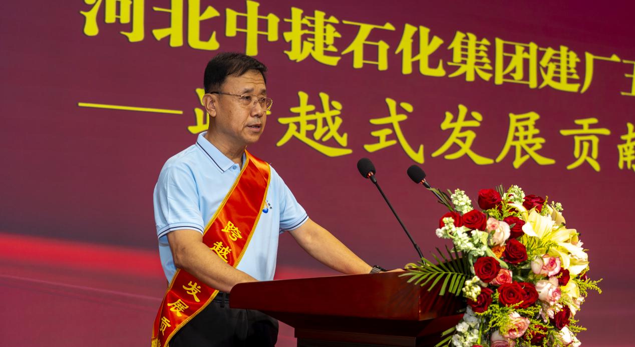 在熱烈的掌聲中,集團董事長王振華發表講話。董事長立足建廠五十周年的發展新起點,以《砥礪奮進五十載 繼往開來譜新篇》為題,深刻洞察時代變局,精準擘畫未來航程。他明確指出,面向未來,我們要“堅持創新驅動,打造核心競爭力;深化精益管理,提升運營效能;拓展市場空間,構建發展新格局;堅持以人為本,共建幸福家園;踐行社會責任,彰顯企業擔當。”同時,董事長以“篳路藍縷、櫛風沐雨、臥薪嘗膽、懸梁刺股”總結凝練了中捷石化五十年艱苦卓絕的奮斗歷程,并以此為精神內核,提出了面向未來的發展要求。