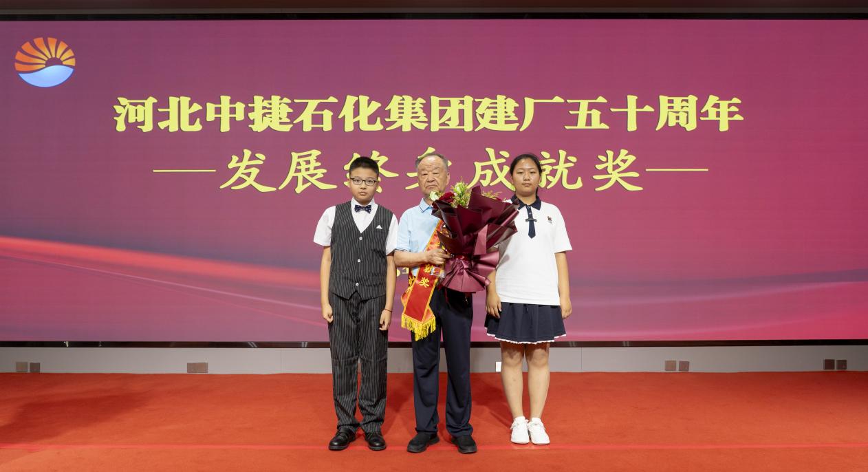 隨后,全體與會人員共同觀看宣傳片《王者之光振業華彩》,領略中捷石化集團董事長王振華先生作為開拓者與掌舵者的戰略遠見與輝煌成就。為致敬其數十年傾注心血智慧、引領集團劈波斬浪的杰出貢獻,大會特授予王振華先生“中捷石化發展終身成就獎”,兩名石化子弟代表登臺獻上崇高敬意,生動詮釋了中捷石化精神血脈的代代相承。