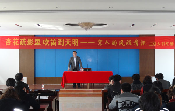 3月22日,河北中捷石化集團和黃驊報社聯合舉辦以“杏花疏影里 吹笛到天明——宋人的風雅情懷”為主題的講座。此次講座,公司邀請了滄州師范學院中文系教授、北京大學文學碩士付紅妹為主講,同時應邀到場的還有渤海新區宣傳工作領導小組常務副組長、宣傳顧問劉桂茂,中捷產業園區組宣部部長田永斌,黃驊報社社長楊勇,黃驊報社副主編李東明,中捷石化集團總經理于國臣等公司領導,以及集團公司文化宣傳員和文學愛好者。