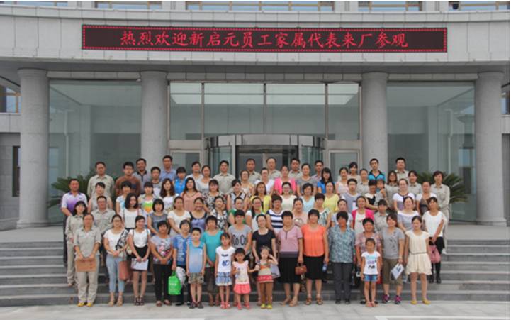 2013年8月4日是公司各級管理人員家屬走進新啟元的日子,上午10:00員工家屬在綜合管理部人員的陪同下來到新啟元,與公司領導共同見證了蒽油反應器吊裝的過程,并由各部室負責人陪同員工家屬繞廠區參觀,對各裝置情況作了了解。