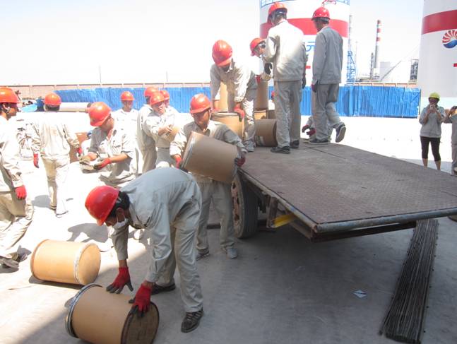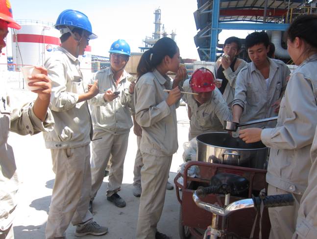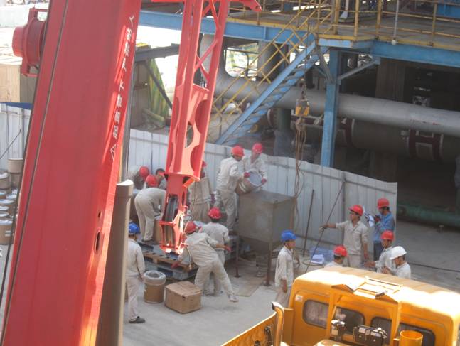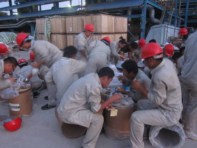 一次又一次的裝運、搬卸、裝填,現場全是伙伴們忙碌的身影。數不清到底裝填了多少袋瓷球,多少桶催化劑,大家匆匆吃過午飯后又投入到了繁忙的工作中,一直到很晚。